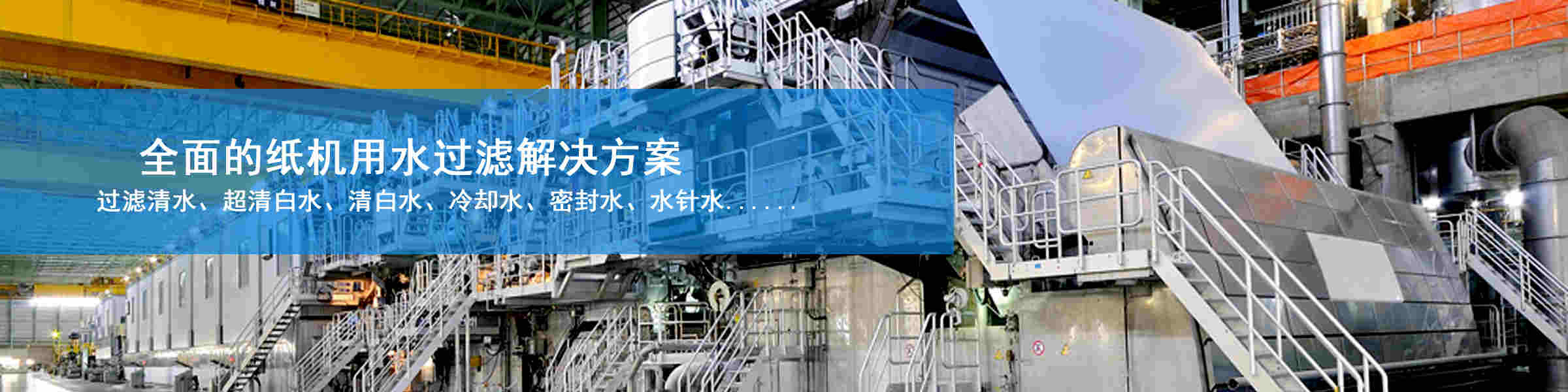 過(guò)濾各類(lèi)紙機(jī)用水如原水、高低壓噴淋水、水針?biāo)?、熱交換水、白水、密封水、軸承冷卻水、冷卻塔水、高低壓清洗水;過(guò)濾各類(lèi)造紙涂料助劑如聚合物、碳酸鈣、膨潤(rùn)土、淀粉蒸煮液、消泡劑、施膠劑、潤(rùn)滑劑、抗水劑、染料、填料、顏料、乳膠等??蛻艋貓?bào):防止噴嘴堵塞,回收再利用水,節(jié)能減排,控制污染雜質(zhì)進(jìn)入濕部,穩(wěn)定并提高紙張質(zhì)量。